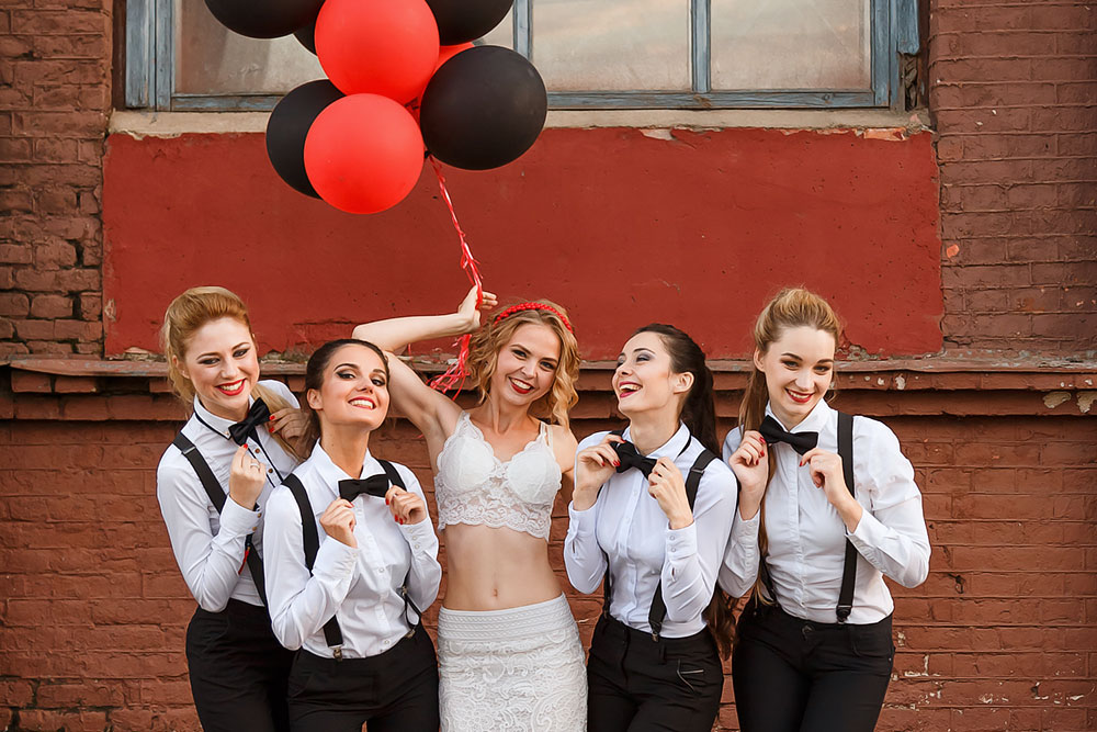 So läuft euer Shooting ab: Für 45 Minuten gehört das Fotostudio ganz euch! Ein professioneller Fotograf sorgt mit viel Charme und Kreativität dafür, dass jedes Bild perfekt wird - egal ob elegant, witzig, wild oder einfach ganz ihr selbst. Ob als "Team Bride", "Crew des Bräutigams" oder komplette Party-Gang!