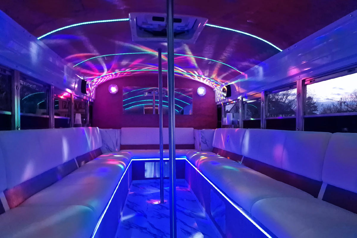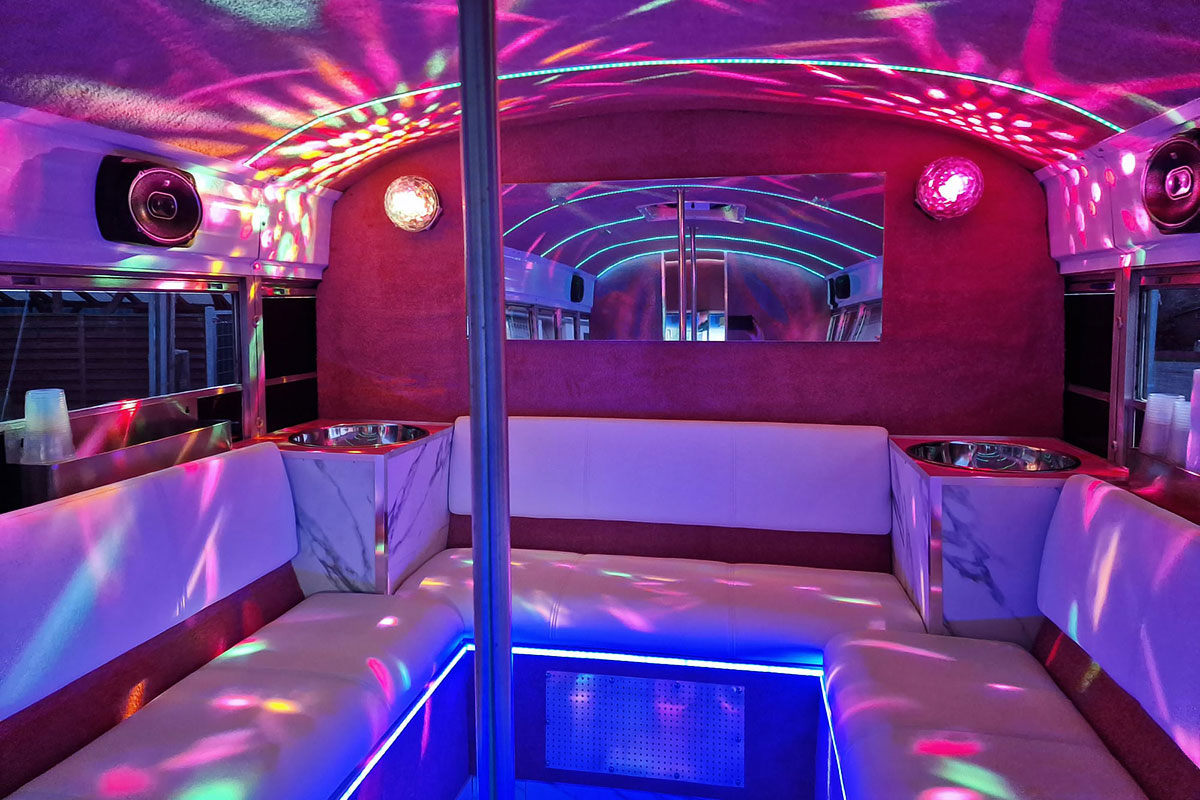 Rent a pink US school bus as a party bus in Frankfurt am Main now β